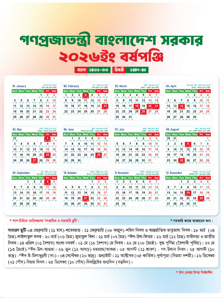 ২০২৬ সালের সাধারণ ছুটি তালিকা
